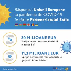 Ca parte a răspunsului său global la epidemia de coronavirus, Comisia Europeană mobilizează un pachet de sprijin de urgență pentru Armenia, Azerbaidjan, Belarus, Georgia, Republica Moldova și Ucraina, astfel au fost realocate 140 milioane EURO pentru cele mai imediate nevoi.